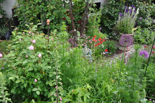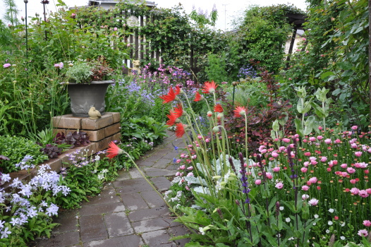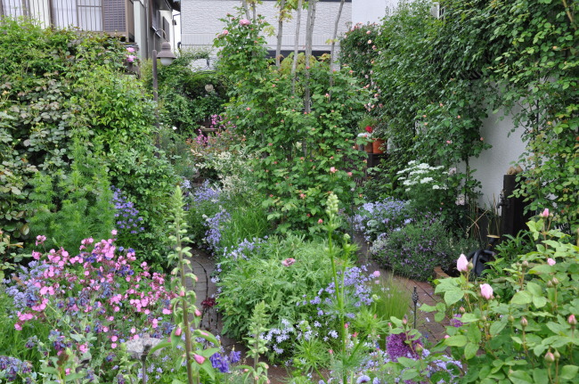 私が作った苗をワイワイと分け、それぞれの庭で咲く