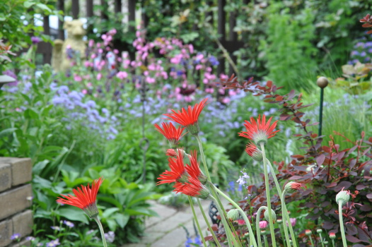 ![]() ![]() ![]() | ヤマボウシの下 メギ ローズグロー マーガレットプチハート ガーベラ サルビア ネモローサ カラドンナ ‥ |