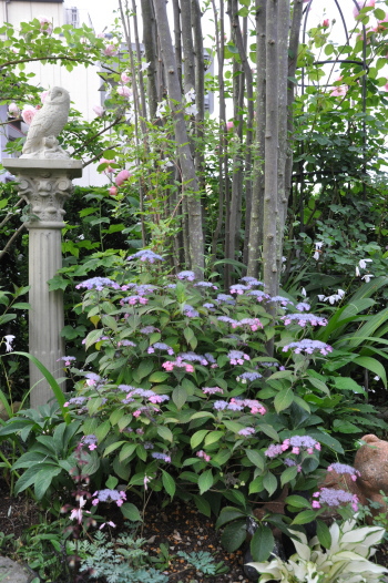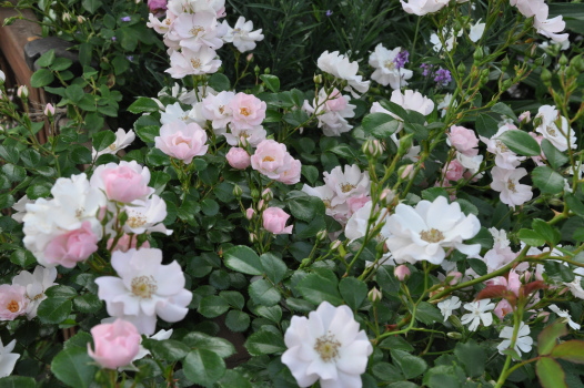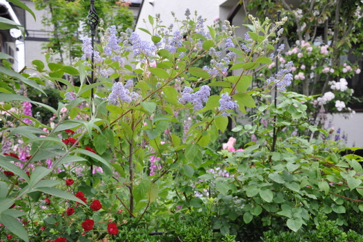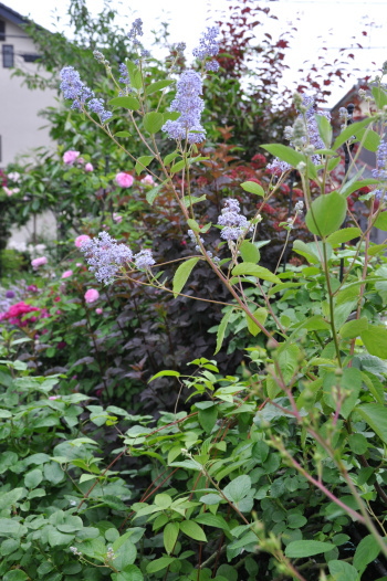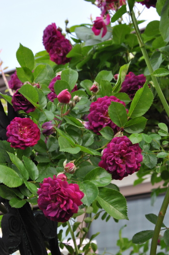 ![]() ![]() | ハイブリッドムルティフローラ ブルーマジェンタ 咲き始めは赤紫色 その後、グレーを帯びる もう咲き終わってしまったハルガスミと ほんの少しコラボ♪ |