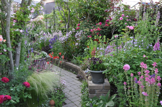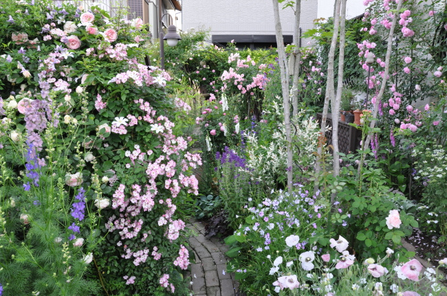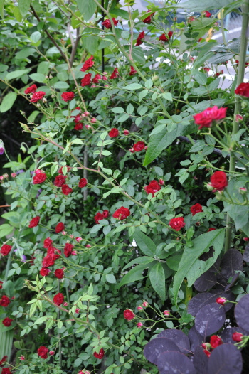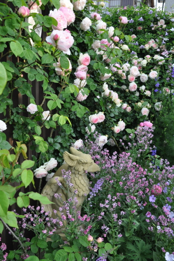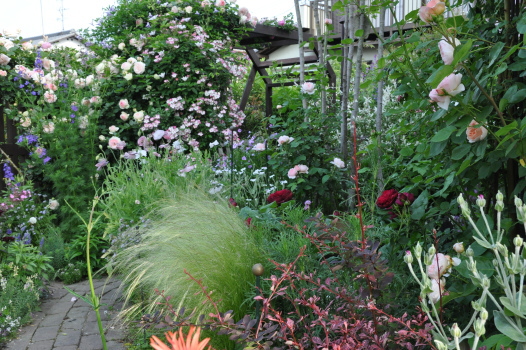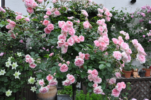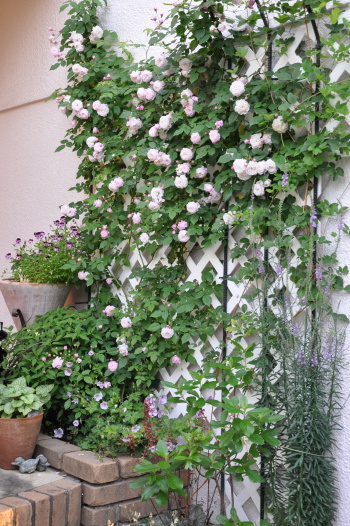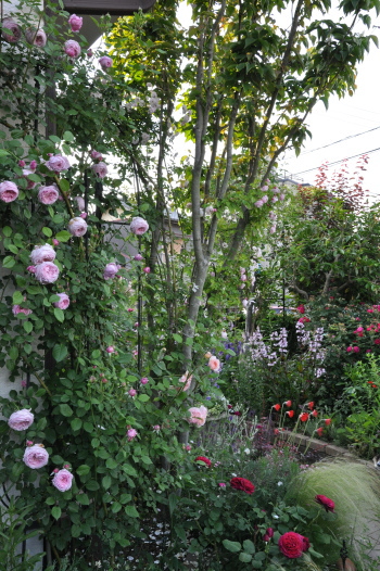 ![]() | バラは数少なくなり クレマのつるが伸びてきている |