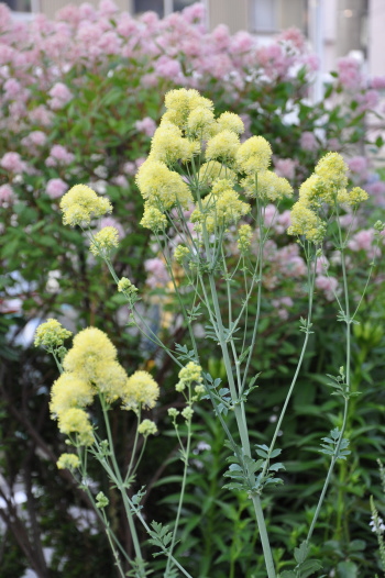 ![]() ![]() | 黄花カラマツソウ (タリクトラム・フラブムssp.グラウカ) 本などで見た時には あまり気にも留めなかったけれど 昨年、バラ友さんの写真を見て一目ぼれ! 昨年、早速、苗を買い、仲間入りしました シルバーグリーンの葉色がお気に入り ソフトな黄色も優しげです 周りの白い花や セアノサスマリーサイモンのピンクにも 調和しているように思う |