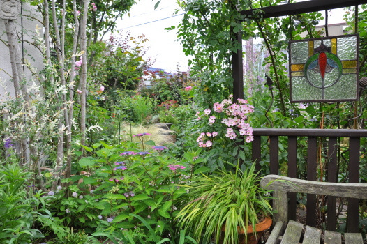 ![]() | 今、一番のお気に入りの場所です 涼しげな色 ホッとします 手前から 山あじさいは笹の舞 白花アスチルベ ギボウシ パトリオット 桂の舞姫 ツルバキア ホワイトレース 春咲きシュウメイキク(バージニアナ)‥ |
