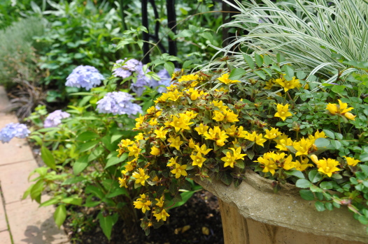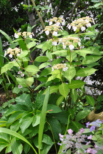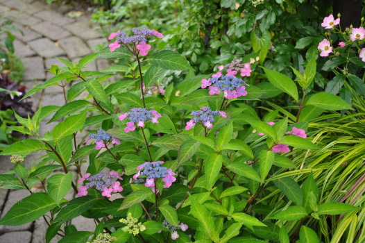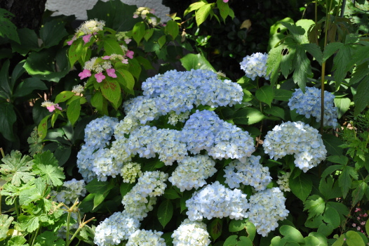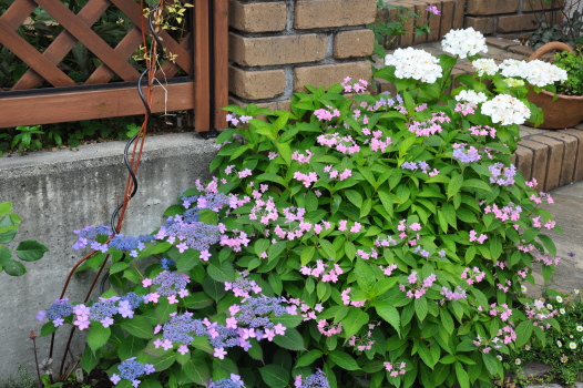 ![]() | ピンクの花が七段花 白い花は乙女です これから少し赤い色が入ってきます ブルーのガクアジサイは 今年は少しピンクが入ってしまった 土の成分が変わったかな~ |