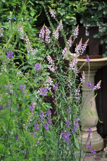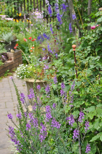 ![]() | 宿根リナリアは 種を作り始め見頃を終えます 大株になると暑さ負けしますが たくさんのこぼれ種から小苗ができます |