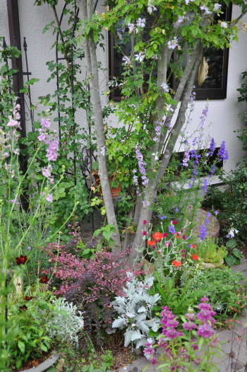 ![]() 西側のキッチンガーデンコーナーへの小道 | ![]() チドリソウ アールグレイ 種を蒔くと先祖返りして青花も咲くけれど 混ざって咲くのもきれいです 個体差もあって比べると色に濃淡がある 来年はどの色を種とりしようかとバラ友と選ぶのも楽しい |
