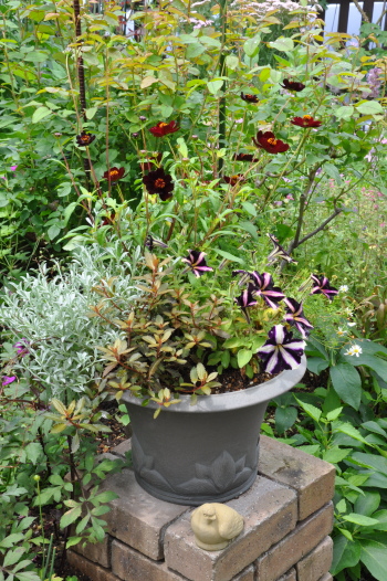 ![]() | 寄せ植えです チョコレートコスモス ほっとチョコレート オレアリア リトルスモーキー ハロラゲス ネルトンブロンズ ワイヤースペード ブラックペチュニア ピンストライプ |