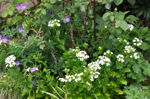 ![]() ![]() | ブルーの花は フウロソウ ジョンソンズブルー 白い花はバラ友Fさんの所からお嫁入り~ 正式名は解りません 遊びに行った時に可愛く咲いていたので 昨年、おねだりして頂きました 今年、我家で始めて咲きました 珍しい花ではありません お花屋さんでも売ってなく 昔からこの辺で見かけるお花です 真っ白で可愛いです 芽吹きの葉はピカピカで綺麗でした |