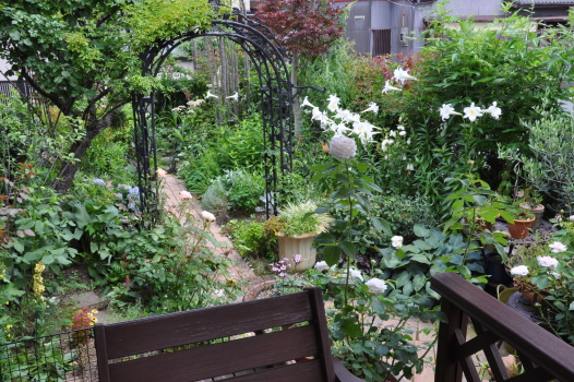 ![]() ![]() | デッキのいすに座って見る 庭のようすです 玄関小道の方を見ると シルバーリーフや白花が多いです 板塀前は赤花や銅葉の色が多いです 夜は汚いものが見えなくなるので 白い花やシルバーリーフが ライトで綺麗です 香りの良いものも多いので 夜風にフワッと香ります 小さなデッキですが 楽しみの場です |