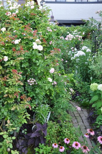 ![]() ![]() ![]() | 私の庭の中では 一番大型のフロックスです 何年も前に バラ友さんに一枝分けてもらいました 年々株も大きくなりました 株が充実してくると花も大きくなりました 後ろのカノコユリが来週は咲いてきそう 隣で咲く花は多分ボルトニアと思われます 何かの苗にくっ付いてきたオマケです 昨年は小さくなんの花か判らず 可憐に見えたその花をそのままにしておきました 今年は本来の姿になりました そして、名前の判断が付きました こんなに大きくなるなんて 昨年は想像もできませんでした 花は同じでも大きさが! スッとする姿はいい感じなんですが 配置替えは必要かな~ 秋になったら考えます |