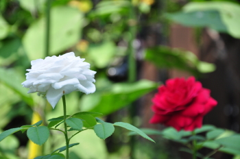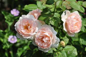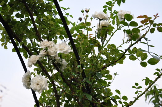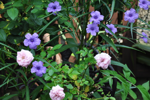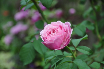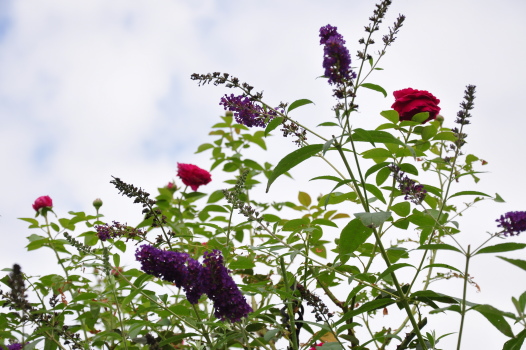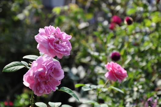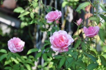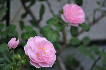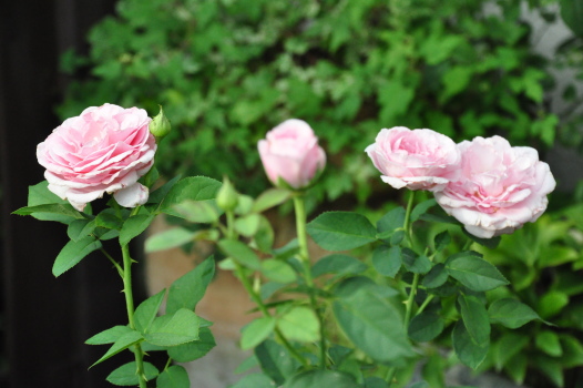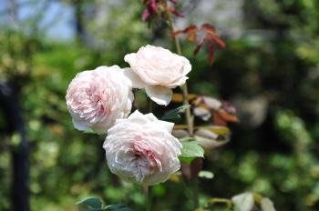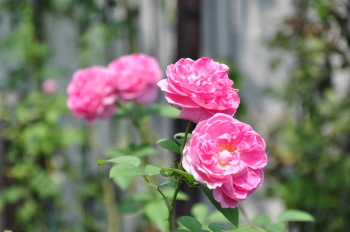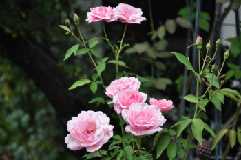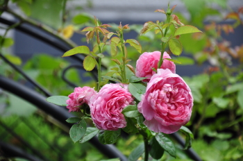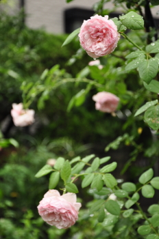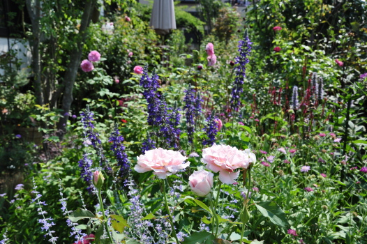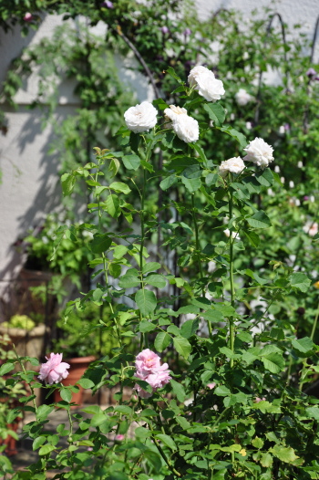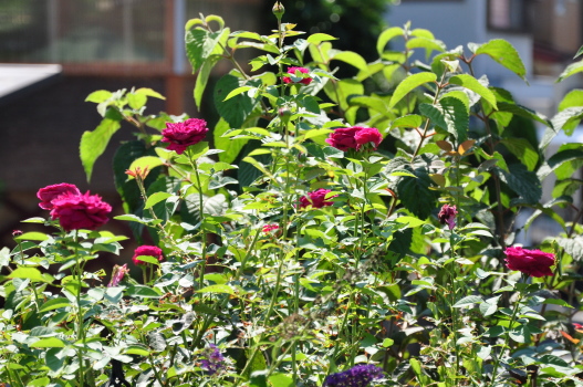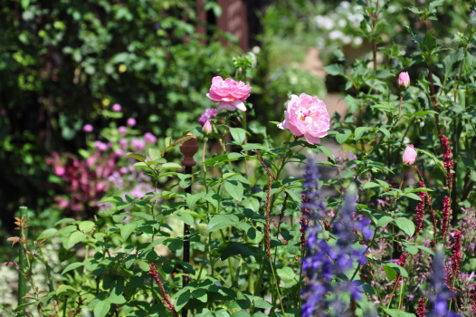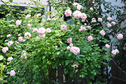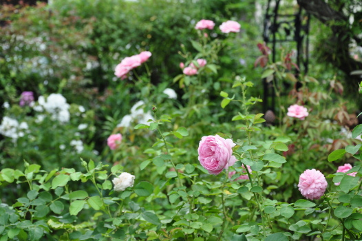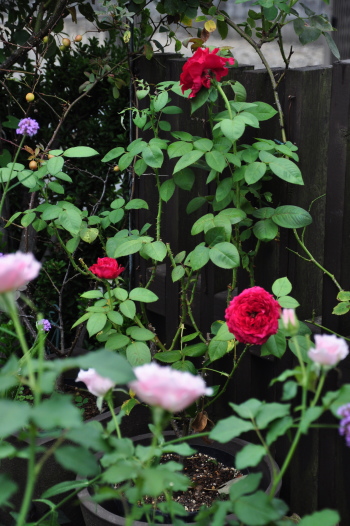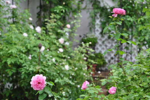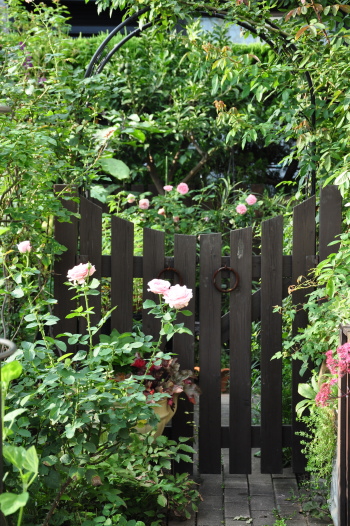 裏木戸のようすです 手前のバラはライラックローズ 向こうに見えるのは ギドゥモーパッサン | ![]() |