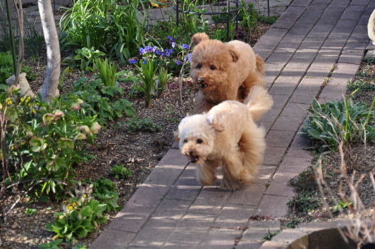 ![]() ![]() 「よーい、どん」の掛け声に 楽しそうにかけ回るぐら&べりん もうすぐ、庭はたくさんの植物で走れなくなるから今のうちに! |
