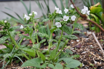 ![]() プルモナリア ブルーエンサイン 丈夫で良く増えます | ![]() プルモナリア シッシングハースト ホワイト 消えないけれどなかなか大株にならない |