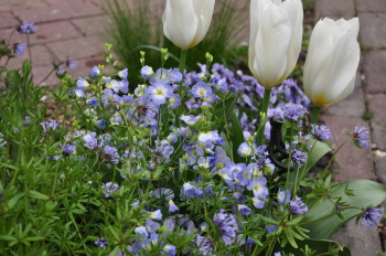 ![]() ベロニカ マダムマルシェ 淡い花色にストライプが入ります 蕾の持ち方も好きです 挿し芽で増やしてあちらこちらで咲いています | ![]() アネモネ フルゲンス 何年も宿根してくれ、少しづつ大株になっています |