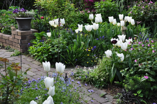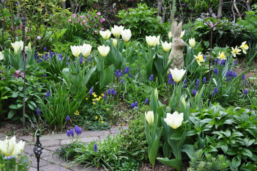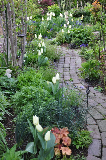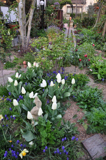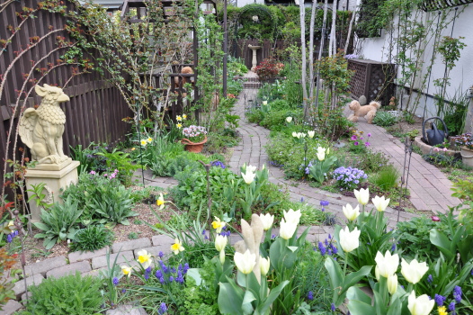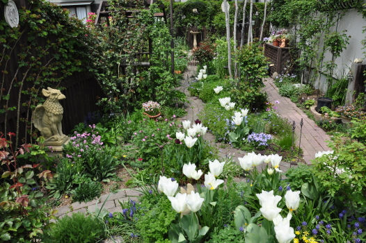 ![]() ![]() ![]() 西の小道から板塀前の方向を見て ここから見るチューリップが好きでした |