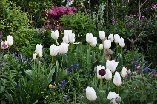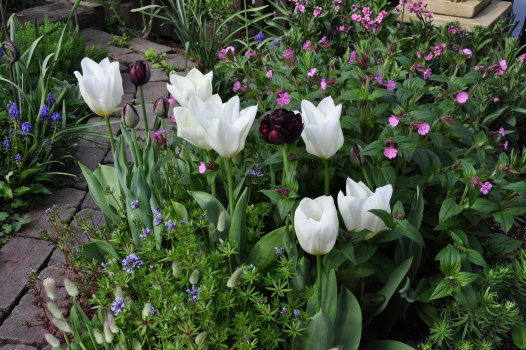今年はメインに植えたのは板塀前から西側の小道です 葉が出てから蕾が色づくまで楽しみに待っています ですが、あっという間に開花期は終わってしまいます 色々な角度から写真を撮って愛でました |