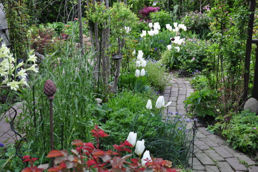 ![]() ![]() ![]() 板塀前から南の小道方向を見たところです 赤いチューリップはアルマーニ |
