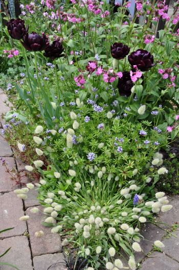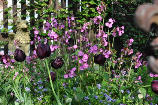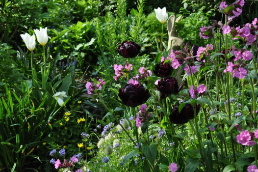 ![]() | 赤いチューリップはアルマーニ そろそろ終わりをむかえます 周りの花が グンと大きくなってきました 主役交代です |