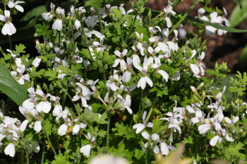 ![]() | ヘスペリス・マトロナリス・ホワイト 昨年 バラクラやガーデンソイルで 咲いているのを見て 真っ白な花色と しっかり立ちあがる茎の強さに魅かれ 売れ残りの苗を一株連れ帰ってきました 夏越しがここでは難しいと考え 種を採り 秋に蒔きました たくさんの苗ができて バラ友にも分けることができました バラ友のお庭で どんなふうに咲くのか見るのも楽しみです |