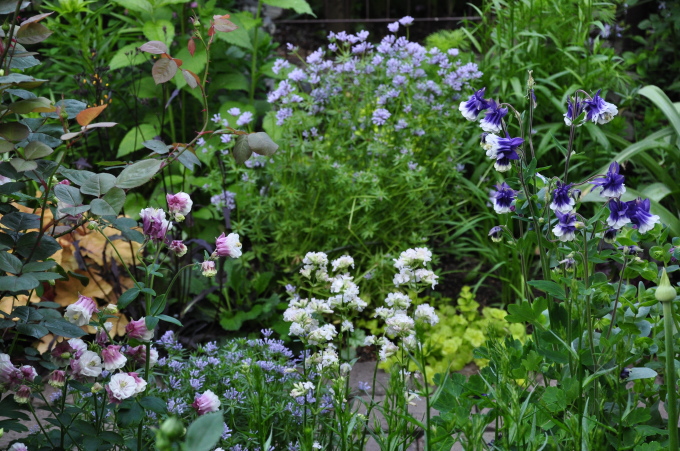 ![]() パーゴラ横の2色咲き | ![]() ![]() ミヤマオダマキ 白花 |