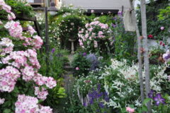 ![]() ![]() | 西の小道に入る所に植えてあるバラは ER インモータルジュノー クレマチスは ベノサバイオレシア |