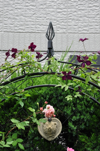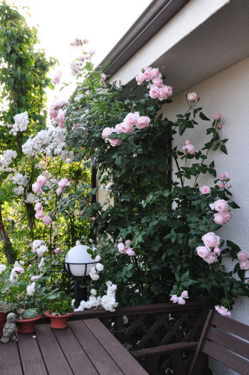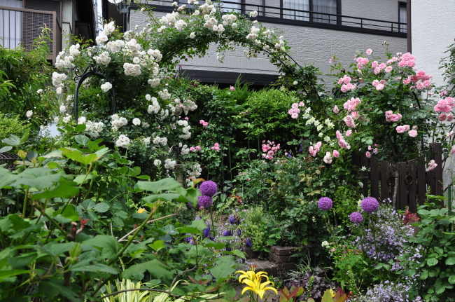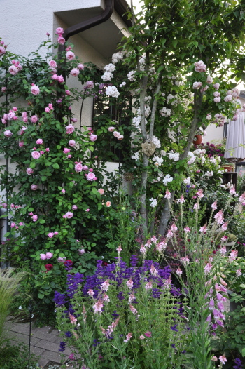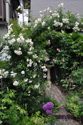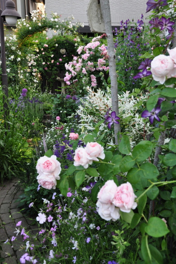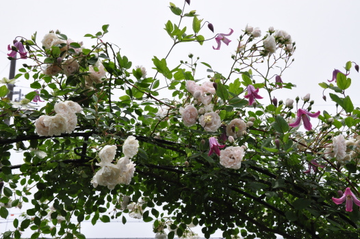 ![]() ![]() ![]() ![]() | バラの中で一番最後に咲きだしたのは キッチンガーデン入口のアーチ スワニーです 一緒に咲いているクレマチスは 踊場です |