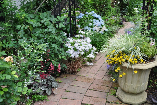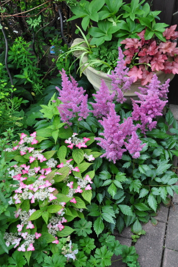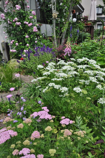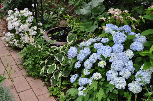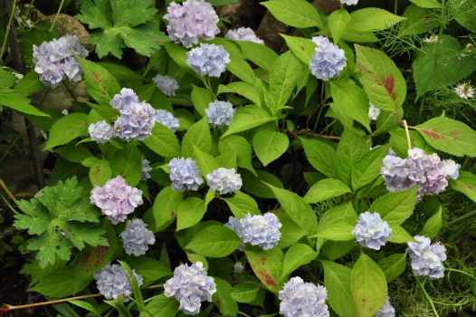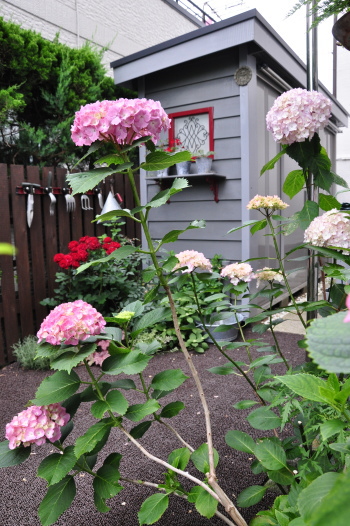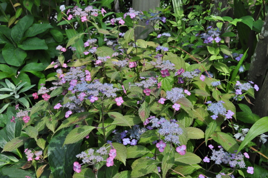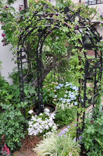 ![]() ![]() ![]() ![]() | バラの一番花が終わってきた今は 一番ホッとする場所です 気持ちが休まる感じがします 白花は山あじさい 笹の舞 淡いブルー色は桂の舞姫 ピンクのガクアジサイは頂き物で名前不明 |