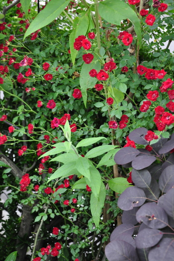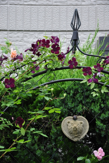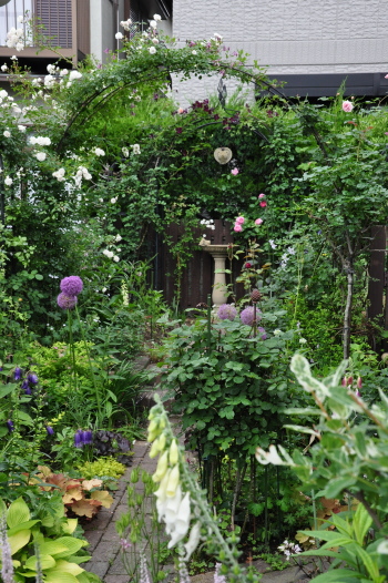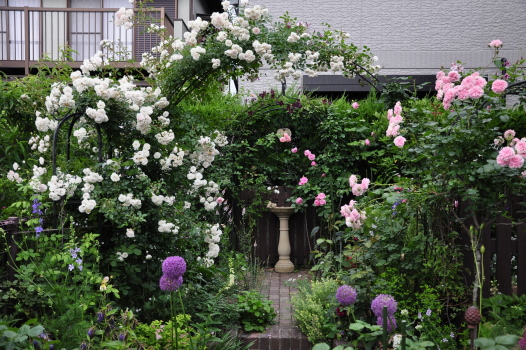 ![]() ![]() | ![]() キッチンガーデンの一番奥のアーチは クレマチス ロイヤルベロアーズ ピンクのバラは フレンチ シャルタンメロー |