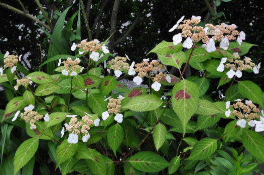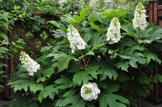 ![]() | 来客用の駐車場の角にある 柏葉あじさい スノークイン |