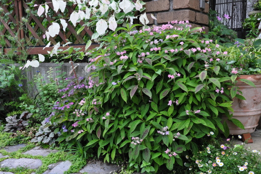 ![]() ![]() | ピンクの花が七段花 &ガクアジサイ |