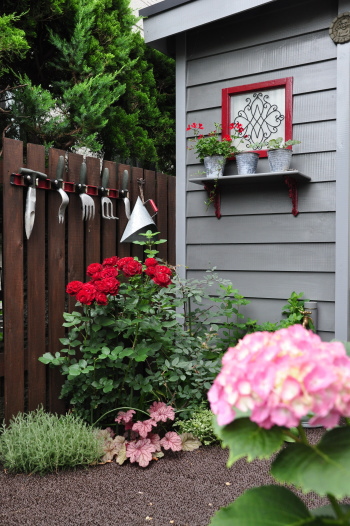 ![]() ![]() ![]() | バックヤードです アジサイは2種です ピンクは昔からあって名前は解りません もうひとつは 頂き物です 名前はサブリナだそうです 赤バラは オマージュアバルバラ |
