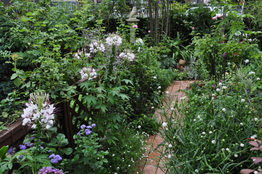 ![]() | 玄関横の東の小道です こぼれ種からのクレオメが 長く楽しませてくれます |