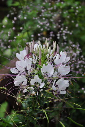 ![]() ![]() | 朝の花です 全体には白に近いです 良く見ると花びらの先に うっすらと色が入ります ピコティみたいと思いました 2010年に クレオメ ヘレンキャンベルを植えました その後 毎年こぼれ種で楽しませてくれます ですが 毎年、お花の雰囲気が違うんですよ 昨年はピンクに咲きました 今年はこんな感じ! こぼれた種で長く咲く クレオメはお得な感じです |