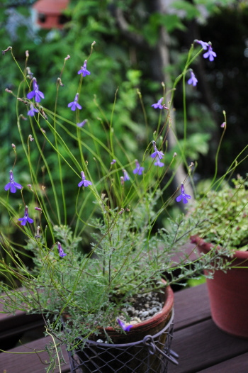 ![]() | ロベリア プリンセスブルー 蒸れに弱いので 水はけの良い土で 小さめの鉢で育てたら 元気に育ち 次々と花が咲き 途絶えないで咲いている もう何ヶ月咲いているのだろう~ この針金のような茎がお気に入り! 涼しげに咲く姿に魅了されてます |