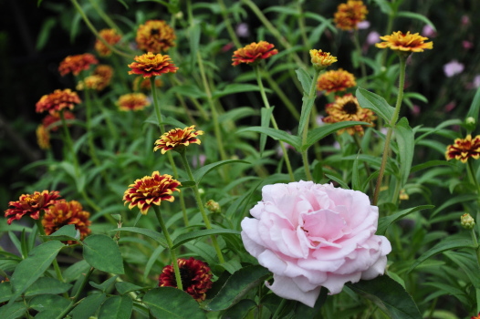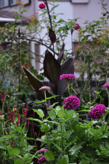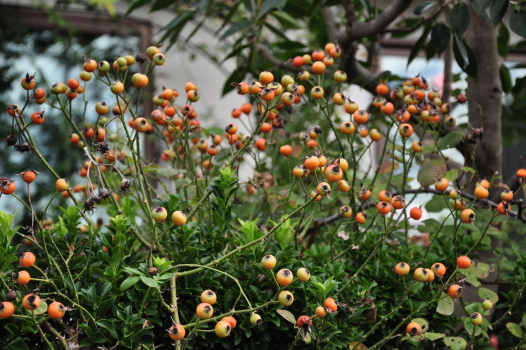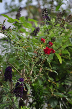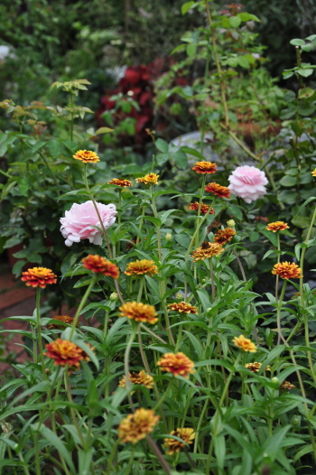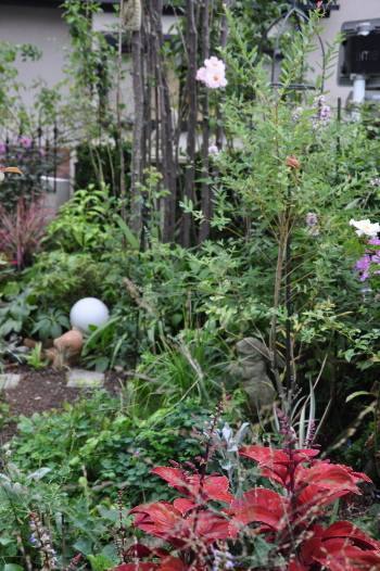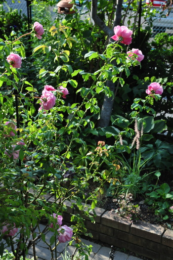 夏のさっぱりした花から秋のたっぷりとした花へ変わりつつあるバラ