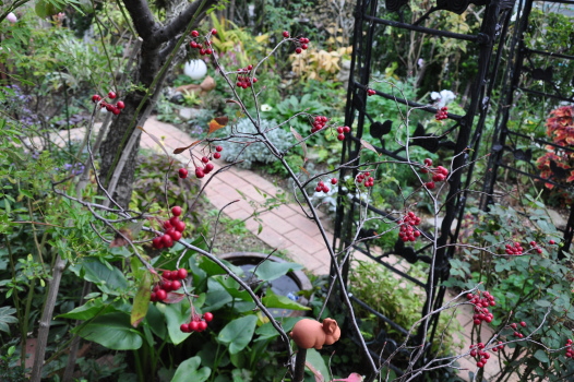 ![]() | 南の小道は少し黄葉が見られ 秋らしい庭になってきました カマツカの実も真っ赤になりました |