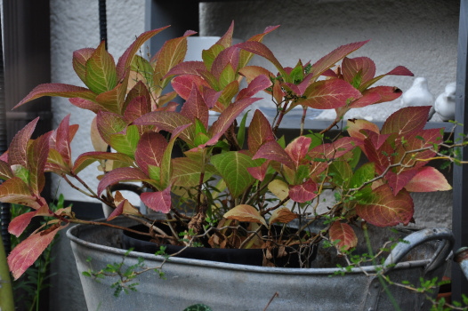 ![]() | 温暖なここは きれいな紅葉を見る事が少ないです そんな庭の中で 紅葉してきたと感じるのは アジサイ達です |