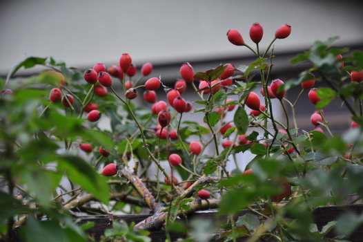 ![]() | 西の庭です パーゴラのブルボンクイーンのヒップが 綺麗な色になりました |