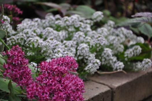 ![]() | こぼれ種であちらこちらで咲いている スイートアリッサムが 寂しくなる庭に温かさをくれます ピンクの花はセダム ミスターグッドバッド |