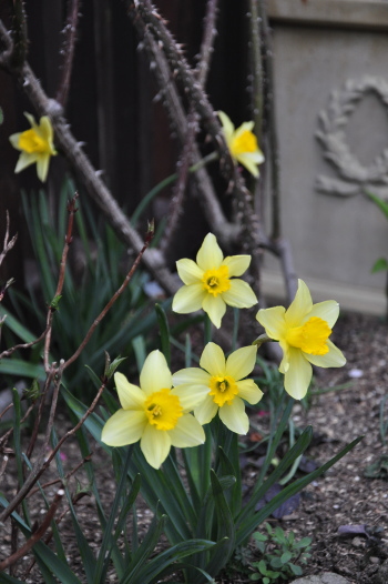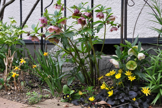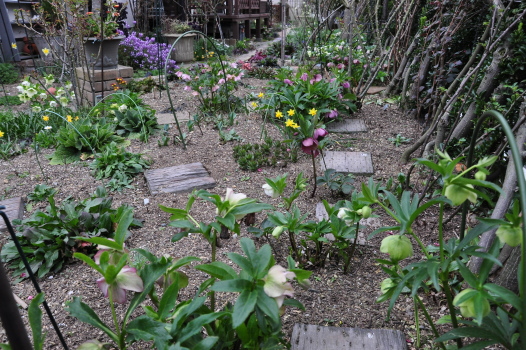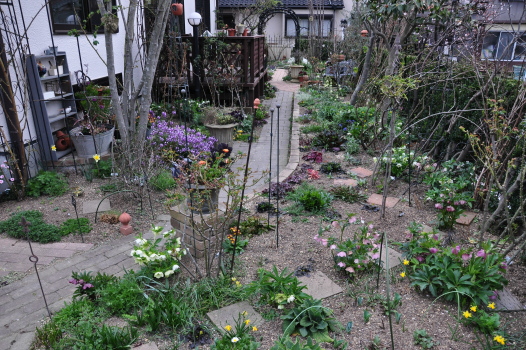 ![]() ![]() | 板塀前から見た南の小道です ミニスイセン ティタティタも咲き始めました |