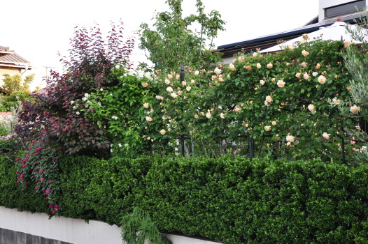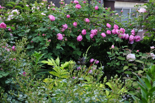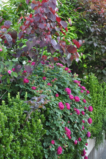 ![]() ![]() | 次の花は ER メアリーローズです そして、銅葉の樹も取り入れています |