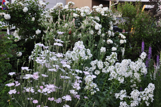 後ろに見えるピンクの花は ハルガスミです その後方に見えるピンクの花は ブレイリーNO.2です | |