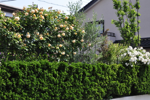![]() ![]() | 外回りの一番端には ER フォールスタッフを植えています 今年はブラインドが多くて心配しましたが 新たな芽が吹き蕾も付け始めました 開花期が長くなりそうです |