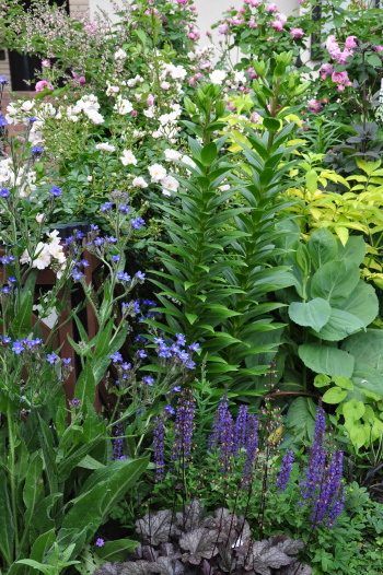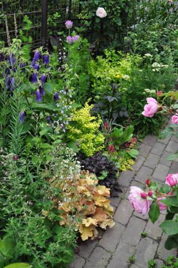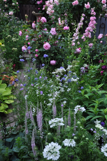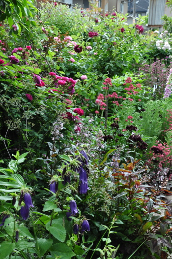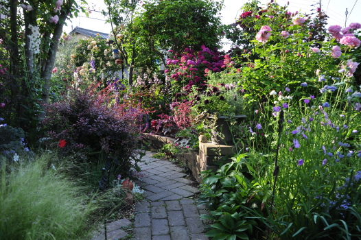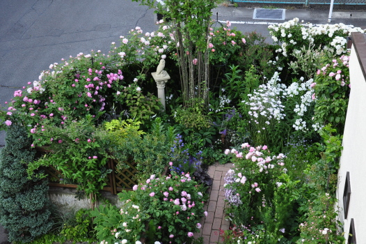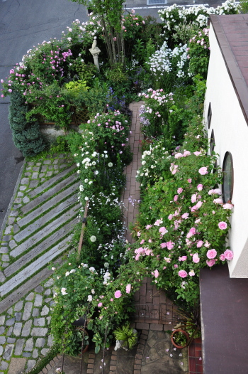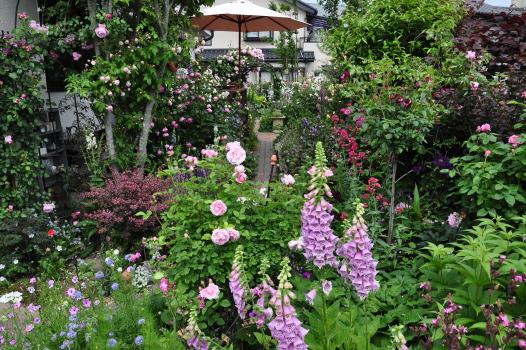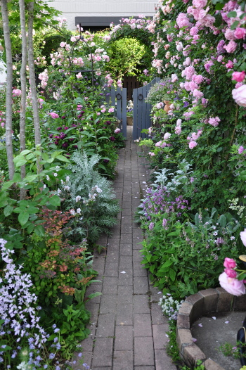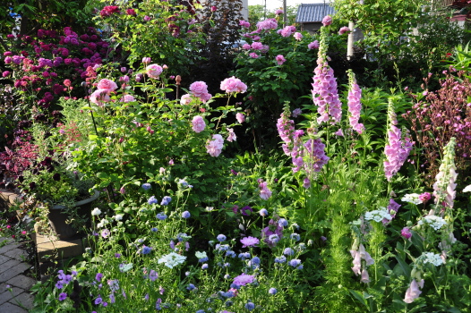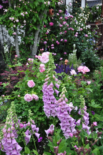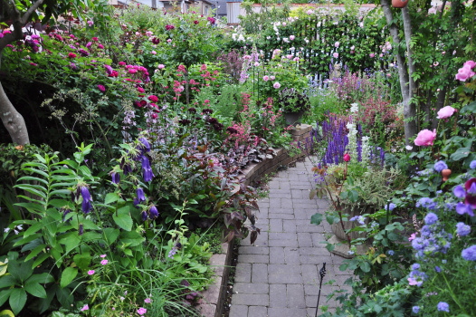 ![]() ![]() ![]() ![]() | 板塀前から南の小道を見るここが好き 狭い庭でも ここは一番長さを見る事が出来る 遅れていたジギタリスも咲きだし 華やかさが増した |