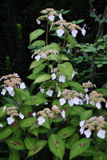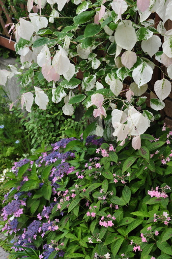![]() | 白い葉は ハナズオウ シルバークラウド &ピンクの花が七段花 &ガクアジサイ |