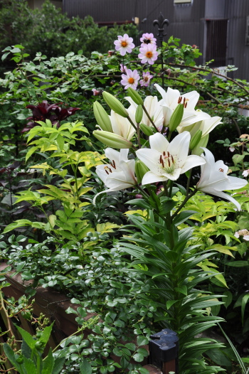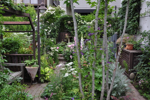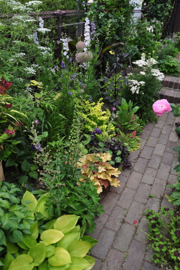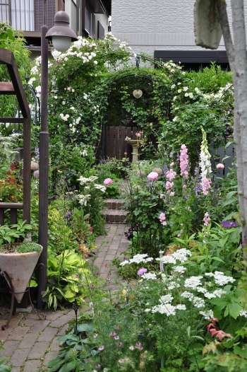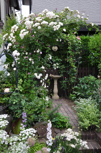 ![]() ![]() ![]() | 東の小道から南の小道に行く角です 今の季節はここが一番美しく感じます アジサイ桂の舞姫のブルーは 優しき色です ギボウシ パトリオットと アスチルベの白が 爽やかで今一番のお気に入りです |