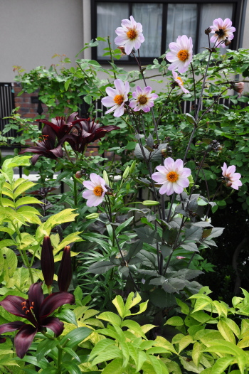 ![]() | 銅葉ダリア 花数が増えてきています 今年は咲きだすのがとても早いです |