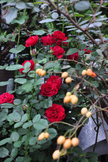 ![]() | ローズヒップ ジプシーボーイのヒップです オレンジ色になってきました これだけで秋景色です |