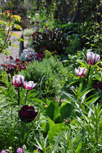 斑入りチューリップ チャイナタウン & 姫シャクナゲ & ロータス クレティクス