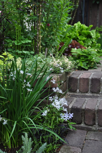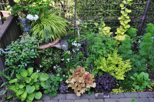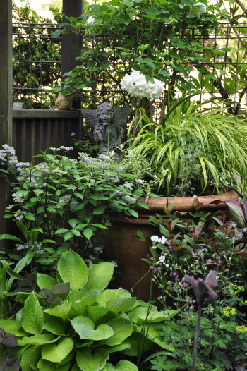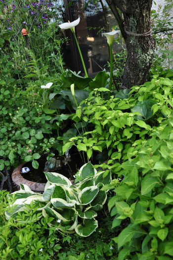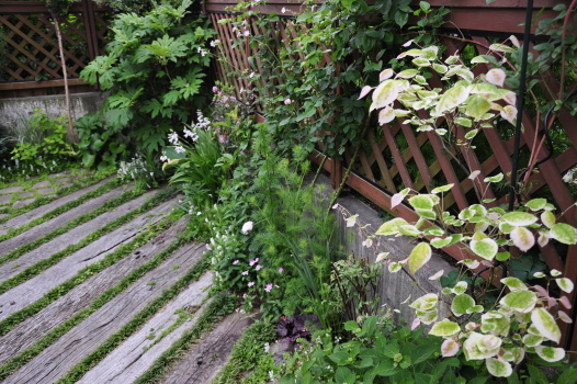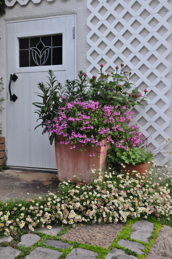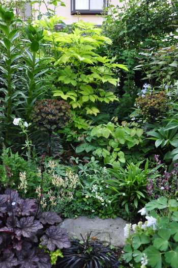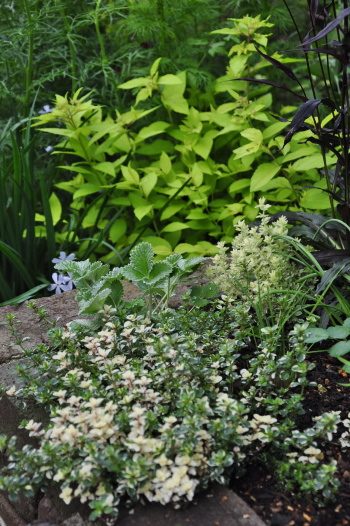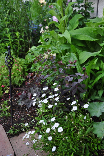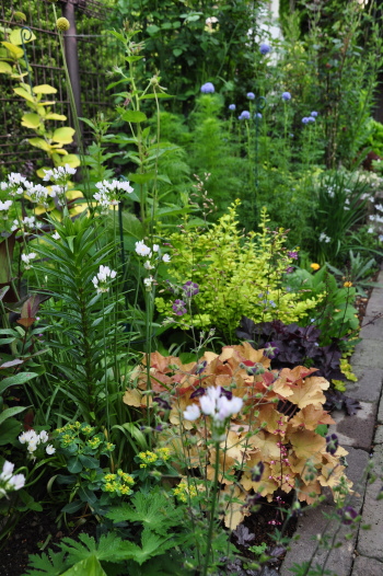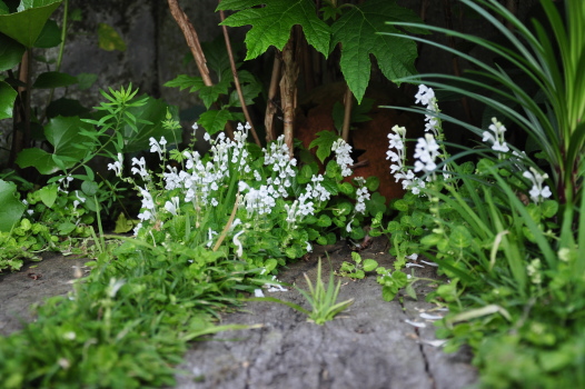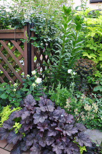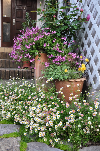 エリゲロン & 鉢の中はERザ・リーブ、リシマキア ミノリセンシス、ペラルゴニウム イオニディフロラム