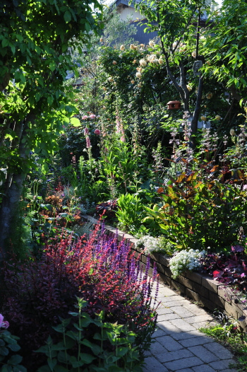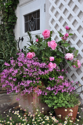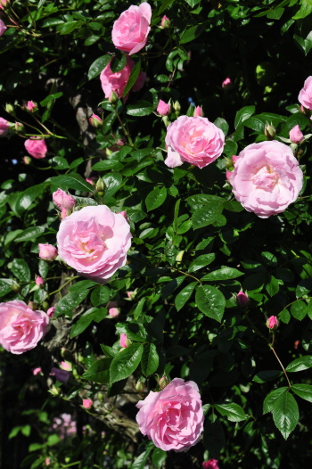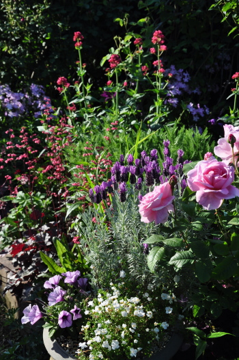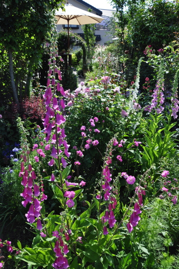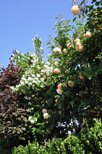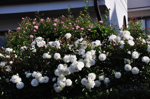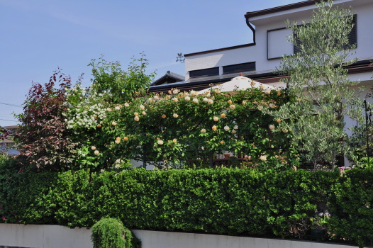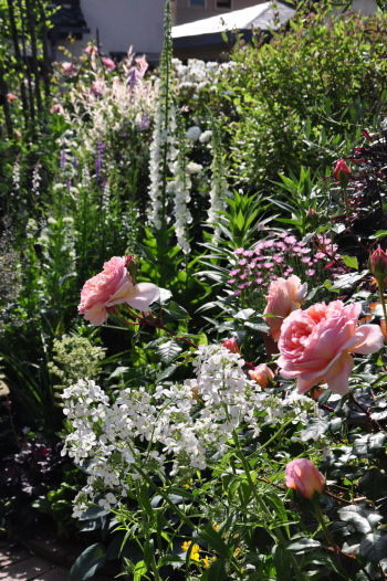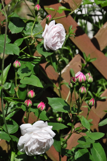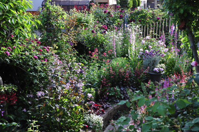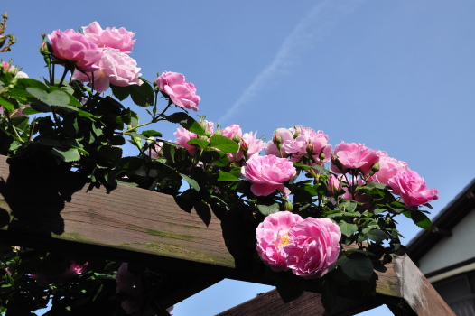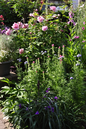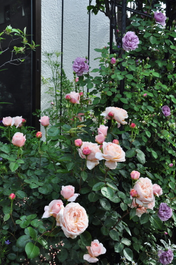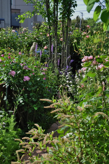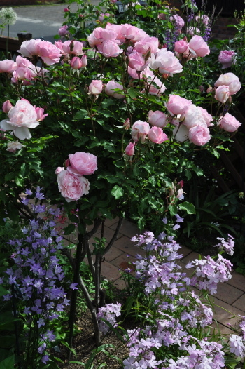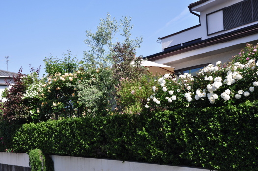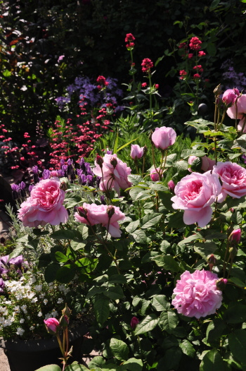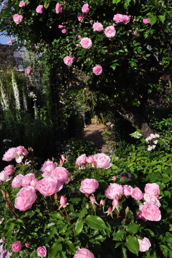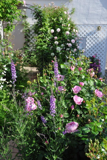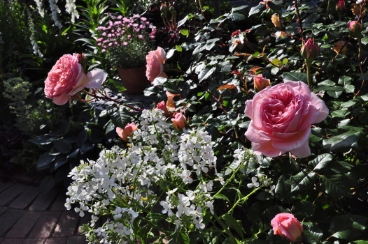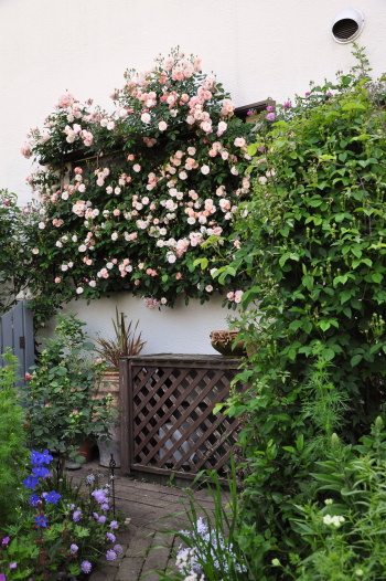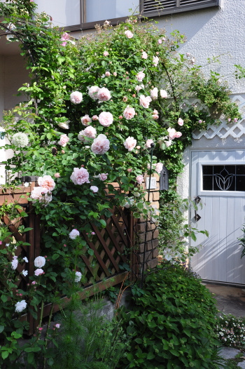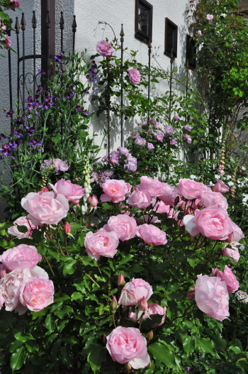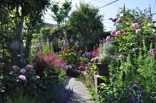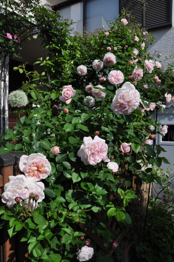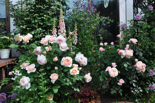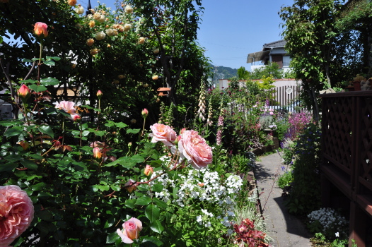 遅咲きのバラを残し、バラが次々と開花して庭が華やかになって行きます
